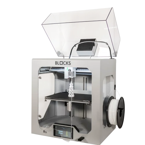 Blocks R21 é uma impressora 3D FFF (Fused Filament Fabrication) com capacidades avançadas na impressão de geometrias complexas.