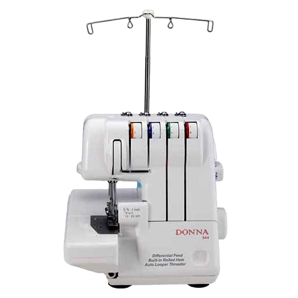 A máquina de corte e cose Donna 844 conta com um overlock de 4 fios que realiza costura de 4/3/2 fios.